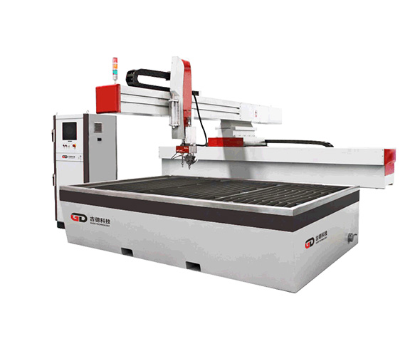 四轴水切割机是古德率先开发的新一代用于陶瓷石材拼花等领域的新型切割机。X4-Ⅲ四轴水切割机采用“可调式斜边切割控制机构”等发明专利技术(专利号:ZL 201110245675.9),在普通水切割机的基础上增加了斜边控制机构和四轴控制系统,通过调整偏摆轴的偏摆角度,并配合回转轴的转动来控制切割头的姿态,使得石材陶瓷切割获得反方向的切口斜边,拼接时省去了人工打磨这一劳动强度最大、花费时间最长、粉尘和噪音污染最为严重的环节。四轴水刀不仅大大提升了石材陶瓷拼图的品质,而且极古德提高了生产效率,降低了生产成本,是石材陶瓷拼花行业的一项革命。
